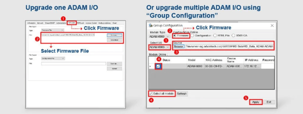 -> Exemple concret : un déploiement qui prenait plusieurs heures sur site peut maintenant être réalisé en quelques minutes, en quelques clics via l’outil Advantech IO Module Utility (onglet « Configuration de groupe »).